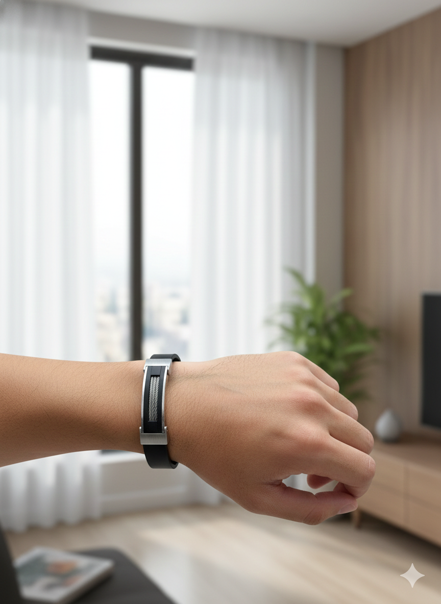 Clean, bold, and unmistakably modern, the IronCore Minimal Wristband features a smooth black band accented with brushed silver-tone steel and a subtle woven cable inlay. The structured design reflects strength and precision, while the secure clasp ensures all-day comfort and durability. Perfect for men who prefer a sleek, understated statement with an industrial edge and timeless appeal.